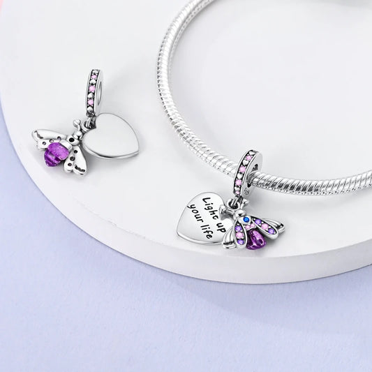 Hot Sales 925 Sterling Silver Luminous Firefly Light Bulb Star Moon Chameleon Charms Pendant Fit Original Bracelets DIY Jewelry