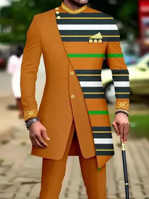Classic African National Printing Batik Men's Casual 2PCS Suit For Wedding Dinner Event Suit terno masculinos complete costume