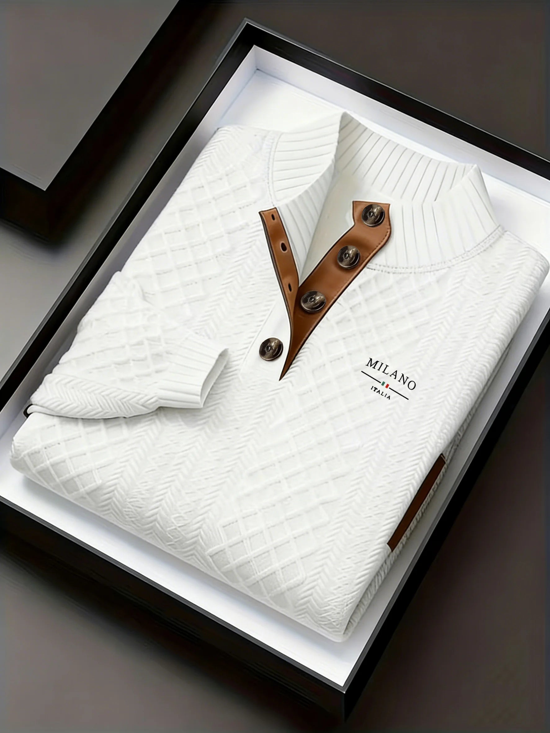 Men's Autumn Winter Stand Collar Knitted Sweater Casual Mature Fashionable All-over Patterned Crew Neck Pullover