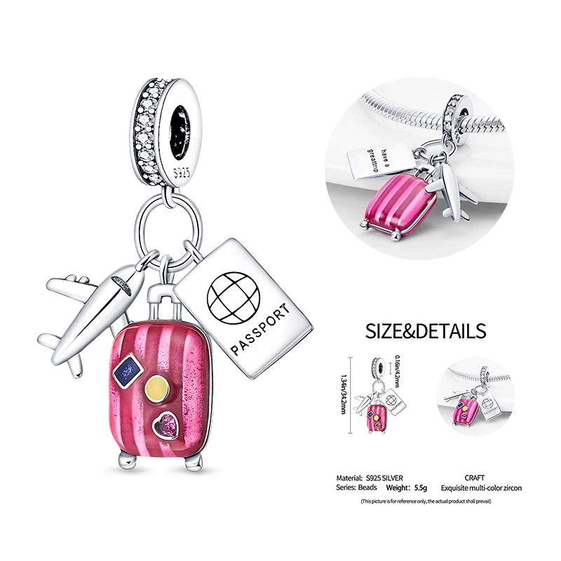 Original Charms 925 Silver Three-In-One Airplane Travel Luggage Charms Bead Fit 3mm Original Bracelet Womens DIY Jewelry Gifts