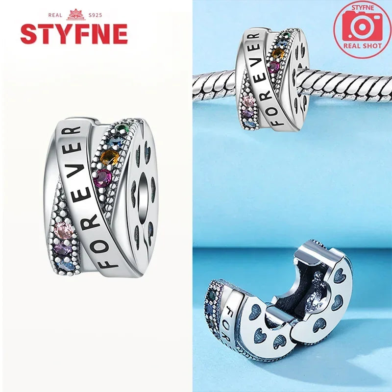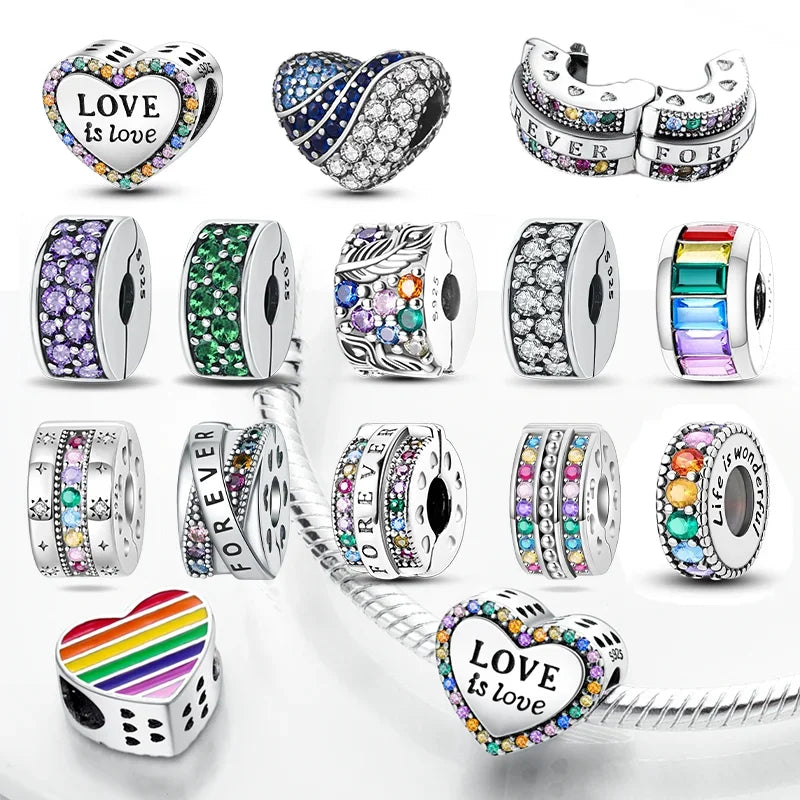 Real Silver 925 Clip Charms Heart Beads Stopper Safety Chain for Original Bracelet Making Fine Jewelry Gifts for Women Diy